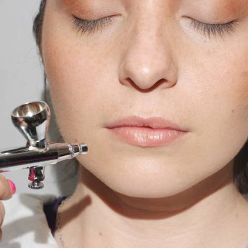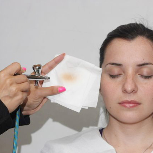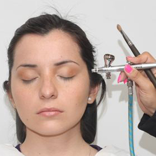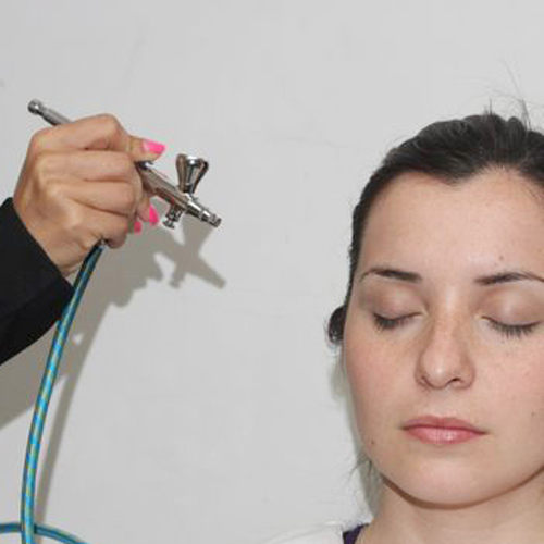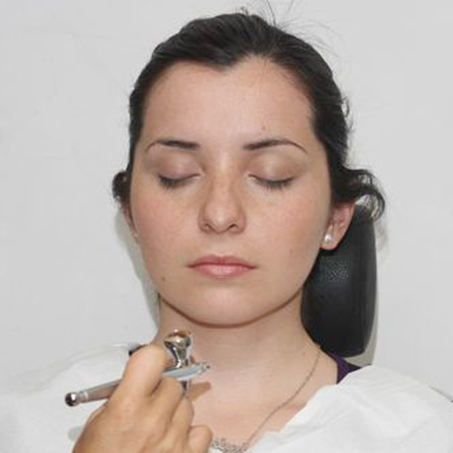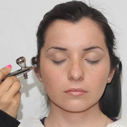 Su aplicación es por medio de una pistola que pulveriza la base a capas en el rostro con acabado totalmente natural, de larga duración y prácticamente no necesita retoque, iluminando la piel.