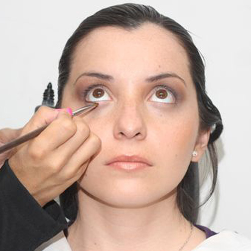 17. Con la misma base oscura y con ayuda de un pincel sesgado, maquillar la línea inferior del ojo.