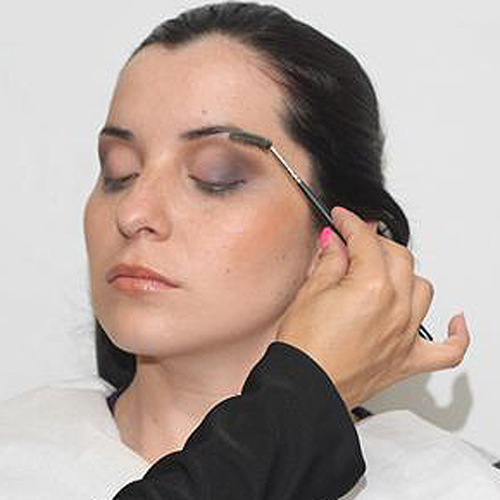 18. Con ayuda de una plantilla y con la misma base de color oscuro sombrear las cejas suavemente para que el acabado sea natural.